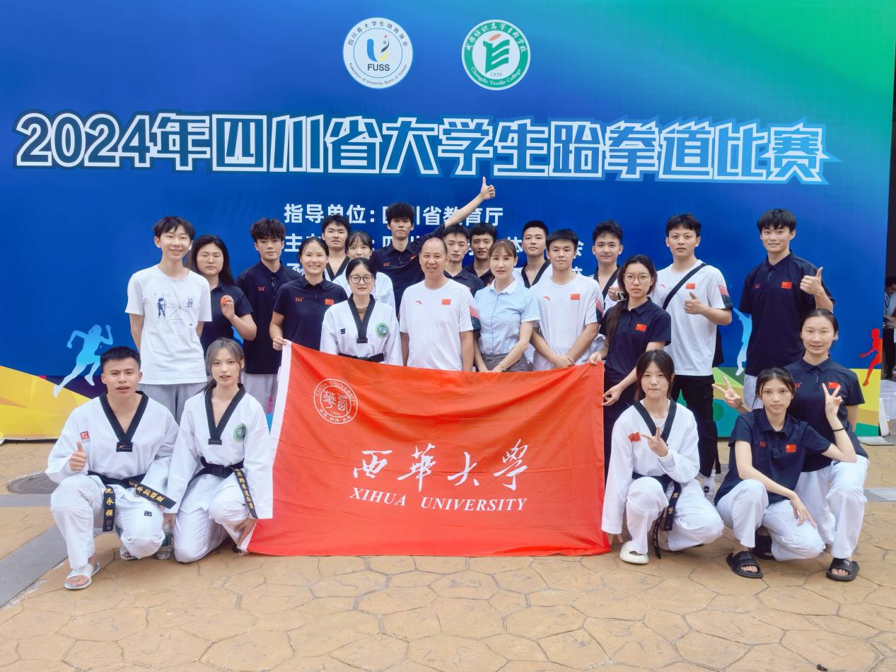 6月21日至23日,由四川省大学生协会主办的2024年四川省大学生跆拳道比赛在成都纺织高等专科学校举办。西华大学跆拳道代表队在领队体育学院党委书记张彦和教练刘利丽老师的带领下参加了此次比赛。本次大赛共设立了五个竞技组别,三个品势组别。西华大学跆拳道队21位运动员在各项比赛中表现出色,顽强拼搏,取得了5金3银6铜的优异成绩。