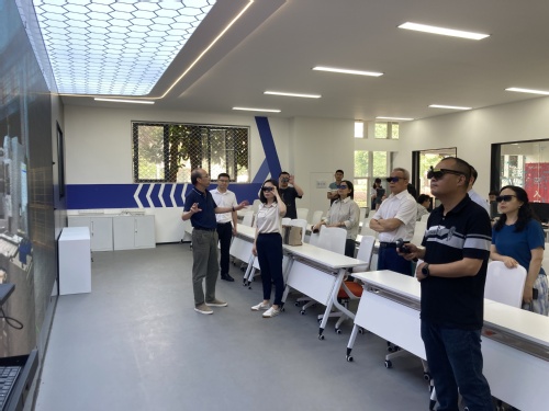 座谈会后,专家组一行对我校智能制造虚拟仿真实验教学中心、汽车交通虚拟仿真实验中心以及新材料制备与加工虚拟仿真实验教学中心的虚拟仿真实验教学与应用情况进行了现场考察,相关专业教师分别进行了演示汇报。专家组对智能制造产线VR虚拟仿真实训室、“虚实结合”的燃料电池客车动力系统测试平台、新材料制备与加工虚拟仿真实验平台及3D打印实验室等虚拟仿真教学资源都给予了高度肯定。
