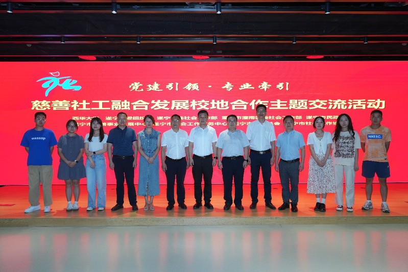 为深入学习贯彻习近平总书记关于基层治理的重要论述,强化社会工作部机构改革后的党建引领、专业牵引的基层治理体制机制,进一步深化校地合作、川渝联动的慈善社工人才培养,近日,由西华大学和遂宁市委组织部、市委社会工作部、市民政局以及重庆市潼南区委社会工作部等联合发起的以“融合、链接、赋能”为主题的慈善社工融合发展校地合作主题交流活动在遂宁市举行。四川省委社会工作部代表现场指导。