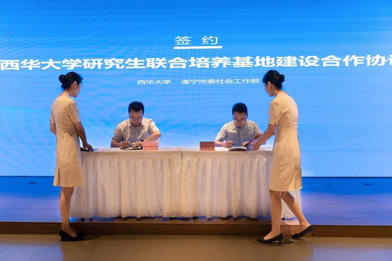 活动现场,西华大学、重庆市潼南区分别与遂宁市委社会工作部签署研究生联合培养基地建设合作协议、川渝毗邻地区社会工作联动发展协议。
