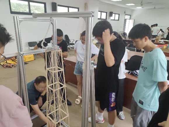 大赛分为结构组和岩土组两个组别,参赛选手将在模型制作、陈述答辩、加载测试3个环节展开激烈角逐。赛事包含了结构设计、材料实验、加载试验和模型制作等多个环节,旨在提升学生的实际操作能力和创新思维。我校学生在比赛中不仅技术专业,更在创新设计上表现出色,有效地将理论知识与实际操作相结合,展示了高水平的工程设计能力和团队协作精神。