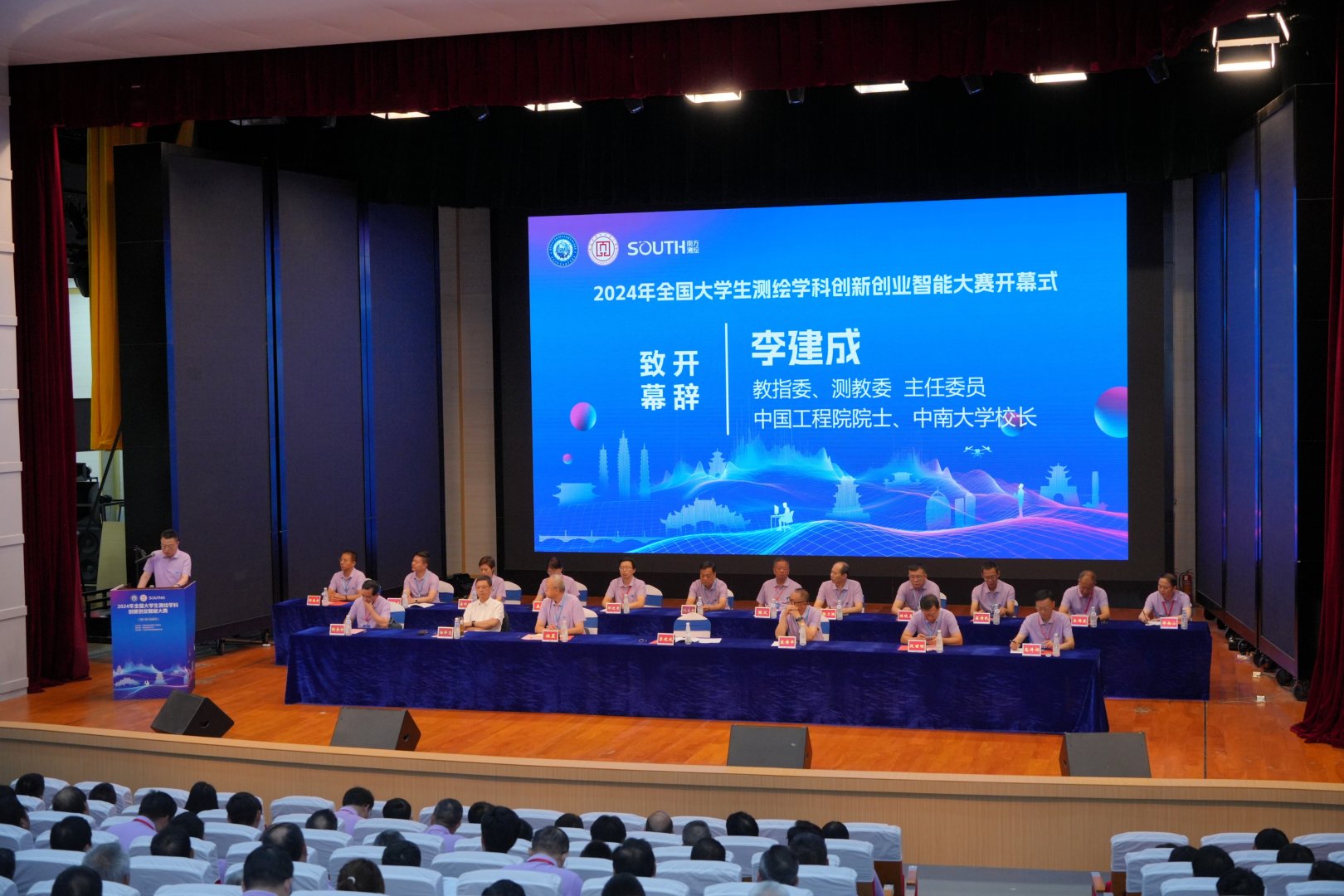 教指委主任委员、测教委主任委员、中国工程院院士、中南大学校长李建成在开幕辞中梳理了国内外大学主要办学任务发展变化的4个阶段,强调了大学生创新创业对于推动行业技术发展和社会进步的重要意义。目前,全国大学生测绘学科创新创业智能大赛的竞赛内容越来越齐全,涵盖了技能竞赛、开发设计和论文竞赛,大赛的影响力越来越大。他肯定大赛对全国测绘类专业人才培养的推动作用,同时也寄望所有参赛的同学们,能够珍惜和享受本次大赛,以比赛为契机,以赛促学,以赛交流,不断强化专业实践技能,培养创新意识,提升创新创业能力。