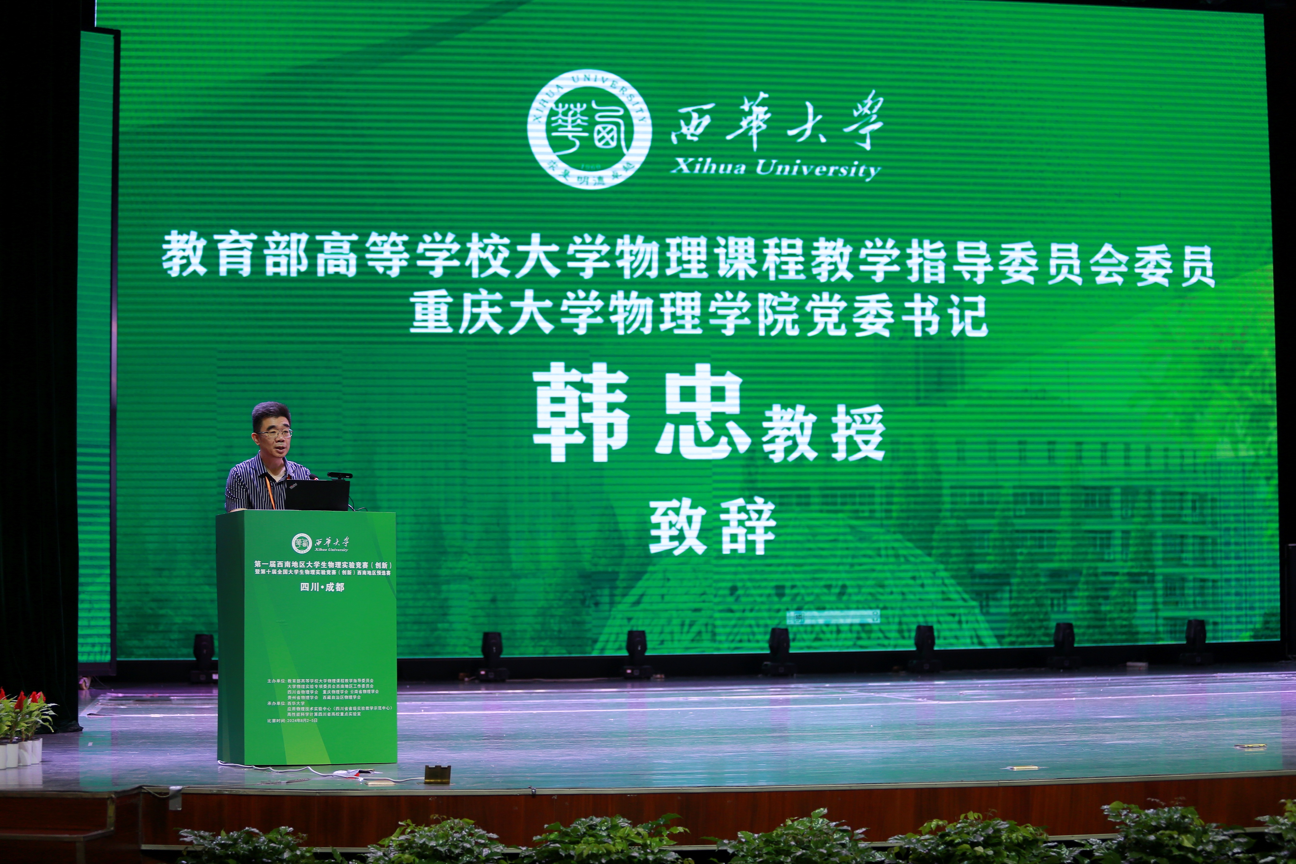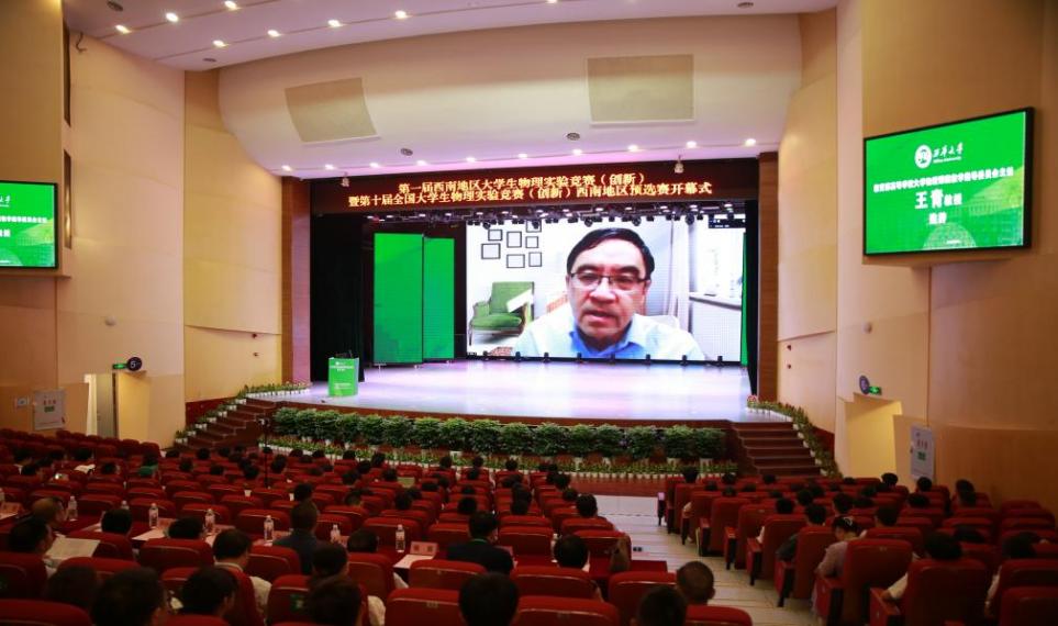 教育部高等学校大学物理课程教学指导委员会主任王青教授、大学物理实验专项委员会西南地区工作委员会主任韩忠教授相继发表致辞,对西华大学成功承办此次竞赛表示祝贺,同时也期待竞赛顺利进行。