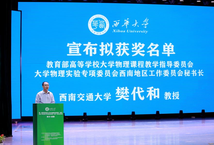 8月5日上午,闭幕式在西华大学大剧场举行。教育部高等学校大学物理课程教学指导委员会委员、大学物理实验专项委员会西南地区工作委员会主任、重庆物理学会副理事长、重庆大学物理学院党委书记韩忠教授,西南地区工作委员会秘书长、西南交通大学樊代和教授,西华大学党委常委、副校长费凌教授等应邀出席。