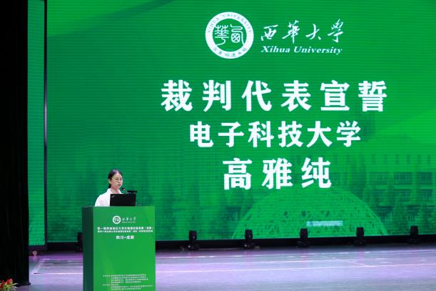 评委代表电子科技大学高雅纯老师与参赛学生代表重庆大学刘倩楠同学在开幕式上进行宣誓,在本次竞赛中将秉持公平竞争、团结协作的精神,坚守公平、公正、公开的原则。来自不同高校的代表团也携带着满腔热情,希望在此次活动中展现出拼搏的姿态与昂扬的风貌。
