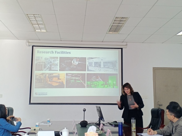 Ekaterina Pavlovskaia教授介绍了英国阿伯丁大学的办学历史、科学研究、荣誉成就以及在爱丁堡学习和生活的保障等情况,并就双方研究的领域表达了希望与西华大学机械工程学科建立合作的意向。
