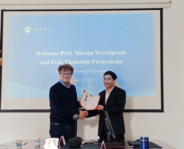 Marian Wiercigroch院士简要介绍了研究团队取得的成果,双方就师生互访、联合培养研究生、共同进行科学研究等领域的合作进行了深入探讨。