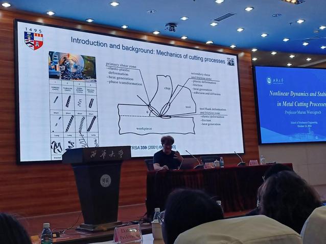 Marian Wiercigroch院士聚焦金属切削过程中的非线性、颤振、分叉和稳定性问题,以其渊博的学识、独到的见解为我们做了一场精彩的报告,重点分享了团队在摩擦颤振领域的最新研究成果。
