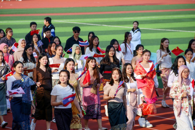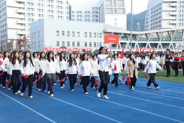 身着航空服,手举无人机,航空航天学院方队展现了航空人的无穷探索精神;舞态生风、青春飞扬,音乐与舞蹈学院方队用曼妙的舞姿彰显青春活力,舞动青春风采;挥舞着手中的五星红旗和本国国旗,来自国际教育学院的国际交流生用运动架起沟通的桥梁,用热情点燃友谊之火……最后压轴出场的是体育学院,他们昂首阔步,自信昂扬,用动感十足的体育舞蹈“点燃”了整个开幕式。各方队步伐坚定,眼神坚毅,学院特色与运动激情的交融让整个运动场充满着向上的青春气息。