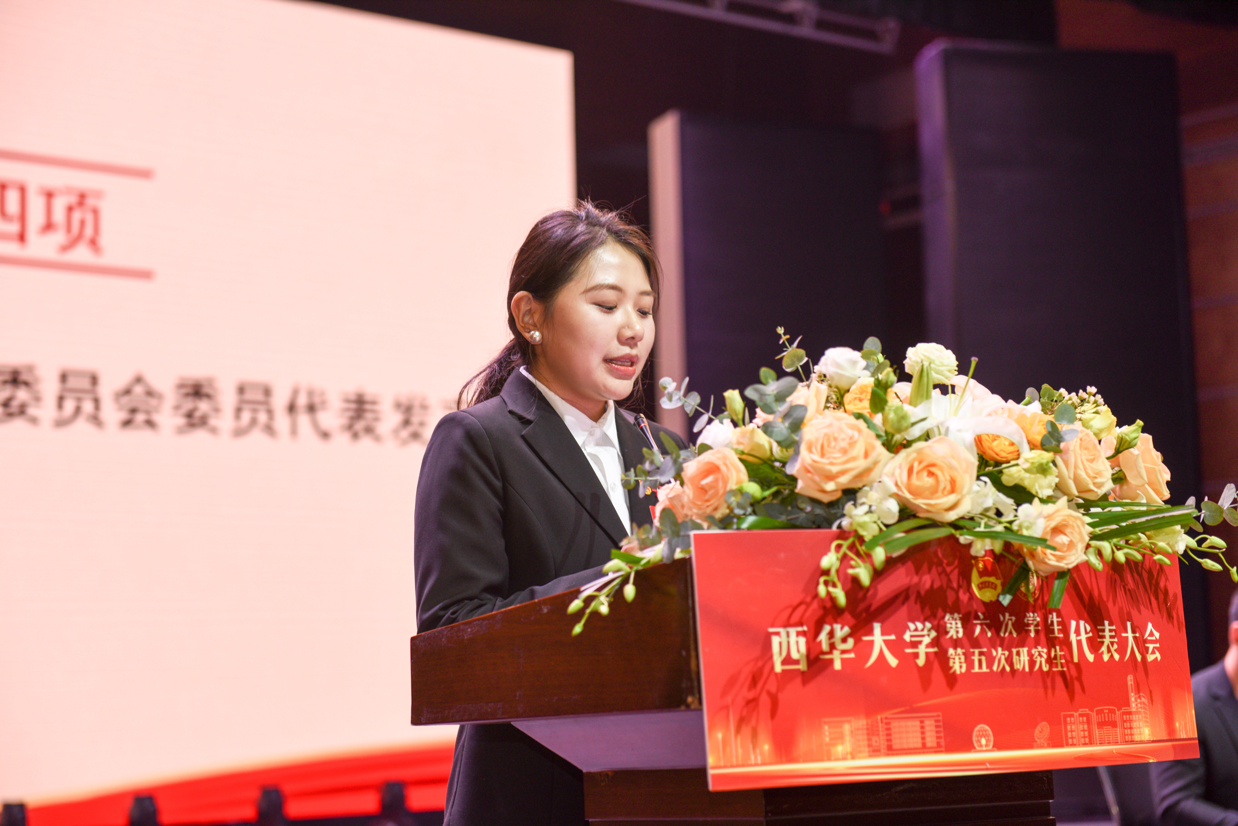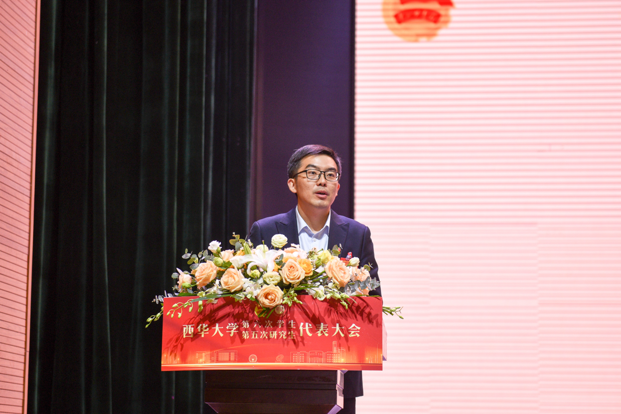 11月9日,西华大学第六次学生代表大会、第五次研究生代表大会在艺术大楼大剧场成功举行。党委常委、副校长费凌,党委常委、宣传部部长王莉,成都市学联执行主席唐珩蓝,学校党委学生工作部部长罗世韡、教务处处长蒋珍菊、研究生院副院长苏文明、校团委书记石元鹏、校团委副书记王映玥以及全校303名学生代表、98名研究生代表参会。成都市学联和30余所兄弟高校学生会组织对大会的胜利召开表示祝贺。