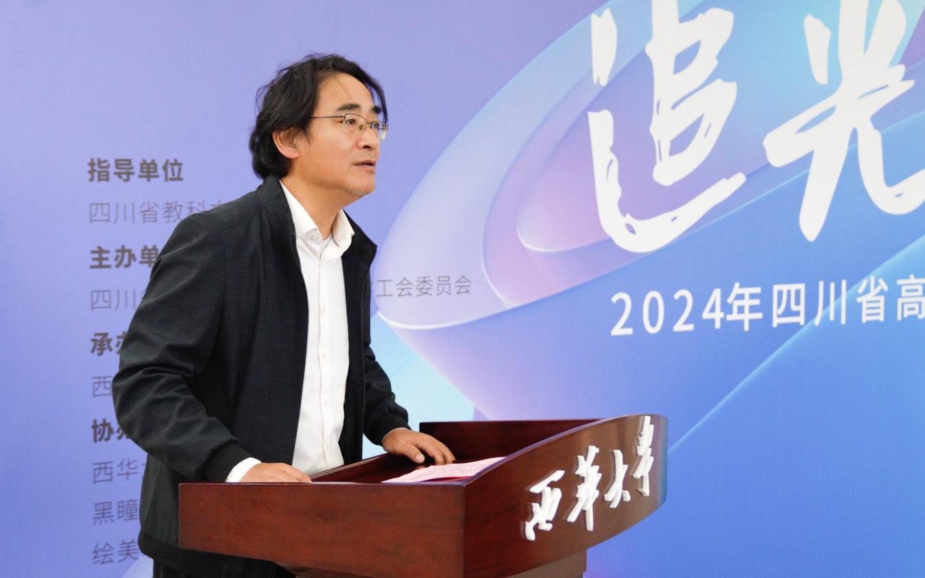 开幕式上,副校长费凌代表学校致辞,热烈欢迎到场的师生朋友们,并对所有获奖、入选的师生表示诚挚的祝贺,向本次活动的组织者和辛勤付出的工作人员表示敬意。他表示,以“追光校园,定格岁月”为主题,通过镜头展现四川高校师生在求知、教学与科研中奋发向上的精神风貌。获奖(入选)作品蕴含着对时代发展的深刻思考和情感表达,为校园生活增添了亮丽色彩。近年来,西华大学积极贯彻落实国家教育方针,实施学校美育浸润行动,不断深化美育教育工作,构建了“五美融合”育人路径,实现了“美育+思政+实践”的育人体系。今后,学校将继续加强与社会各界的互动合作,推动更多更好的艺术文化交流活动开展,营造多元化、特色化的校园文化浓厚氛围。