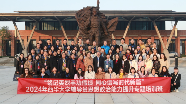 为进一步落实立德树人根本任务,建设好新时代高校辅导员队伍,11月29日至12月1日,我校2024年辅导员思想政治能力提升专题培训班在四川张思德干部学院顺利开展。本次培训班以“铭记英烈丰功伟绩 同心谱写新时代新篇”为主题,通过现场教学、专题党课等多种形式,在看、听、思、悟过程中体验红色之旅、追寻革命足迹、传承红色基因。