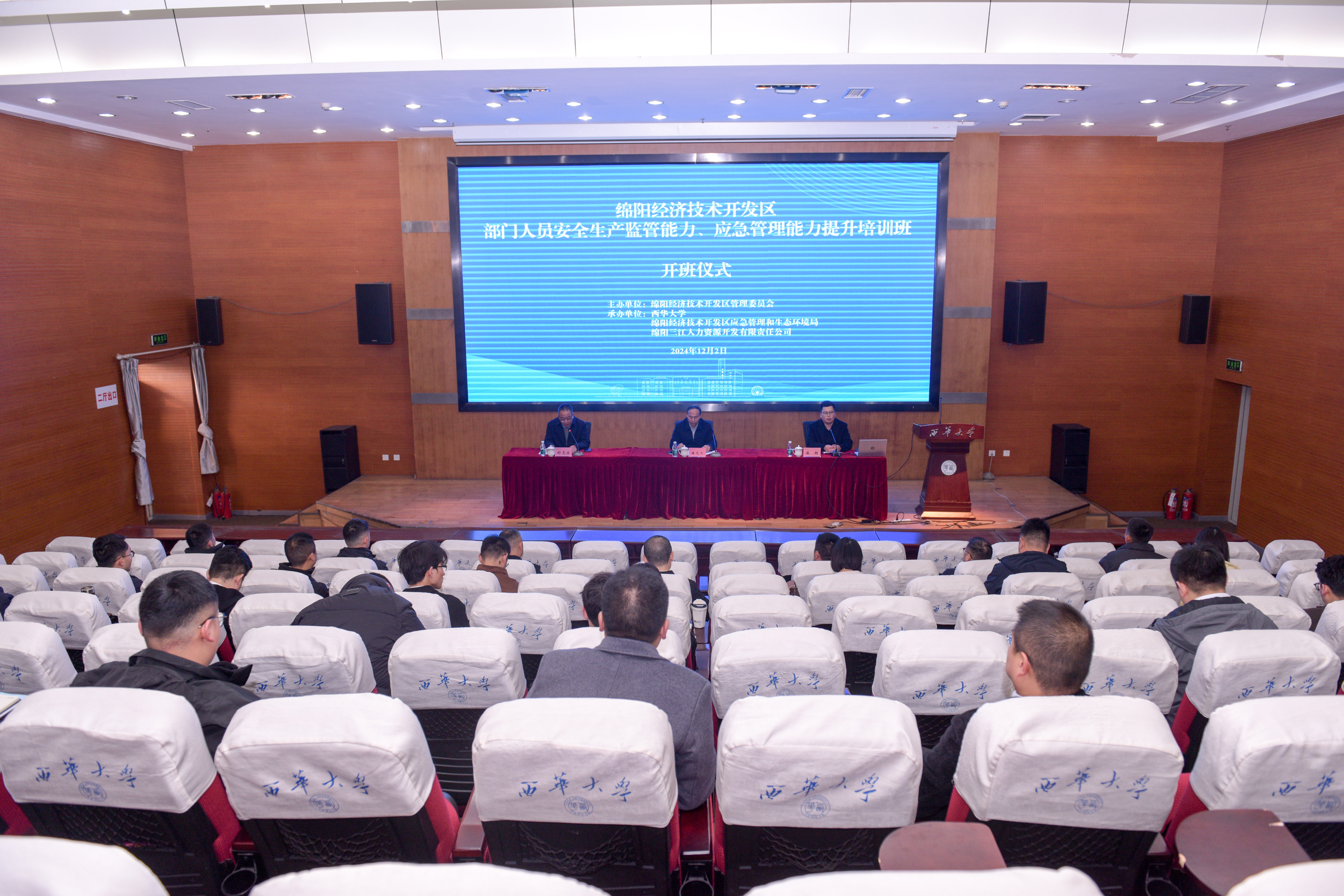 12月2日,绵阳经济技术开发区2024年部门人员安全生产监管能力、应急管理能力提升培训班开班仪式在我校图书馆报告厅二厅举行。绵阳经开区党工委委员、管委会副主任潘文七,西华大学应急管理学院院长舒志乐出席开班仪式。