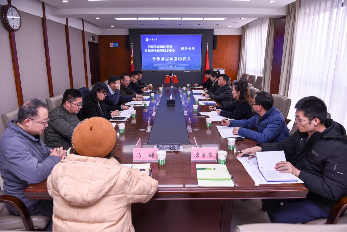 为推动食品领域产学研融合,促进食品产业高质量发展,12月5日,四川省市场监管局食检中心与我校食品与生物工程学院合作备忘录签约仪式在学校办公楼412会议室举行。四川省市场监管局安全总监余德仲,副校长邵永波出席签约仪式。省市场监管局食检中心、我校食品与生物工程学院相关负责人和教师代表参会。