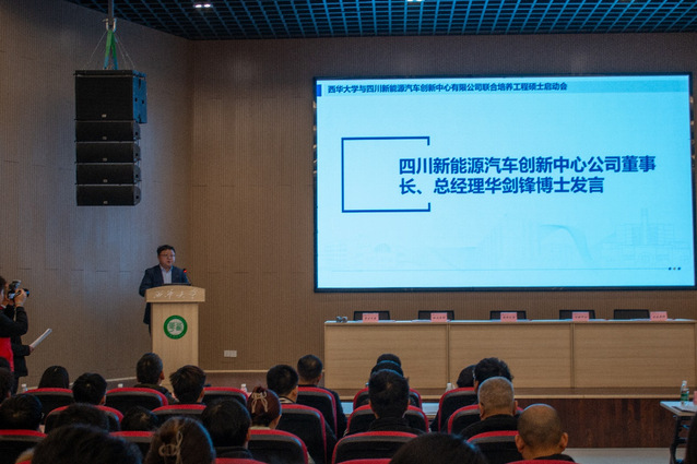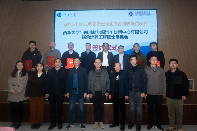 12月2日下午,西华大学与四川新能源汽车创新中心有限公司联合培养工程硕士项目启动会在宜宾校区行政楼103报告厅举行。党委常委、副校长费凌,四川新能源汽车创新中心董事长、总经理华剑锋,宜宾市委人才和大学城工作局副局长刘义以及企业、学校导师代表和联合培养学生代表参会。会议由汽车与交通学院副院长孟忠伟主持。