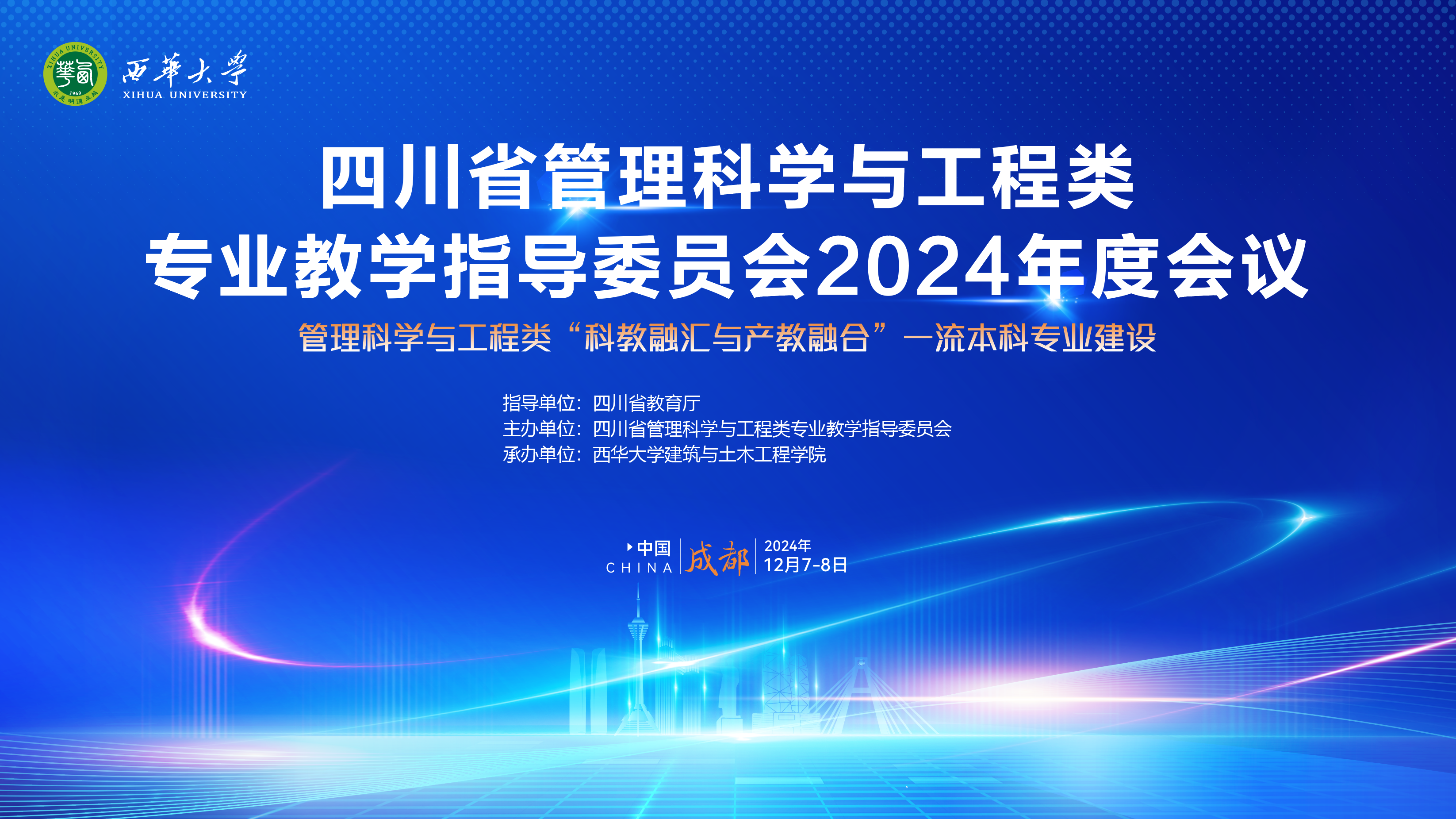 12月8日,四川省管理科学与工程类专业教学指导委员会2024年度会议在我校召开。本次会议由四川省教育厅指导,四川省管理科学与工程类专业教学指导委员会主办,西华大学建筑与土木工程学院承办,主题为“科教融汇与产教融合:一流本科专业建设”。西华大学党委常委、副校长费凌代表学校致辞。四川省管理科学与工程类专业教学指导委员会主任委员、电子科技大学经济与管理学院院长陈旭教授致开幕辞。来自电子科技大学、四川大学、西南交通大学、西华大学、四川轻化工大学、四川传媒学院等高校的教指委委员、领导及专家教授30余人参与此次年会。开幕式由教指委秘书长、电子科技大学经济与管理学院艾兴政教授主持。