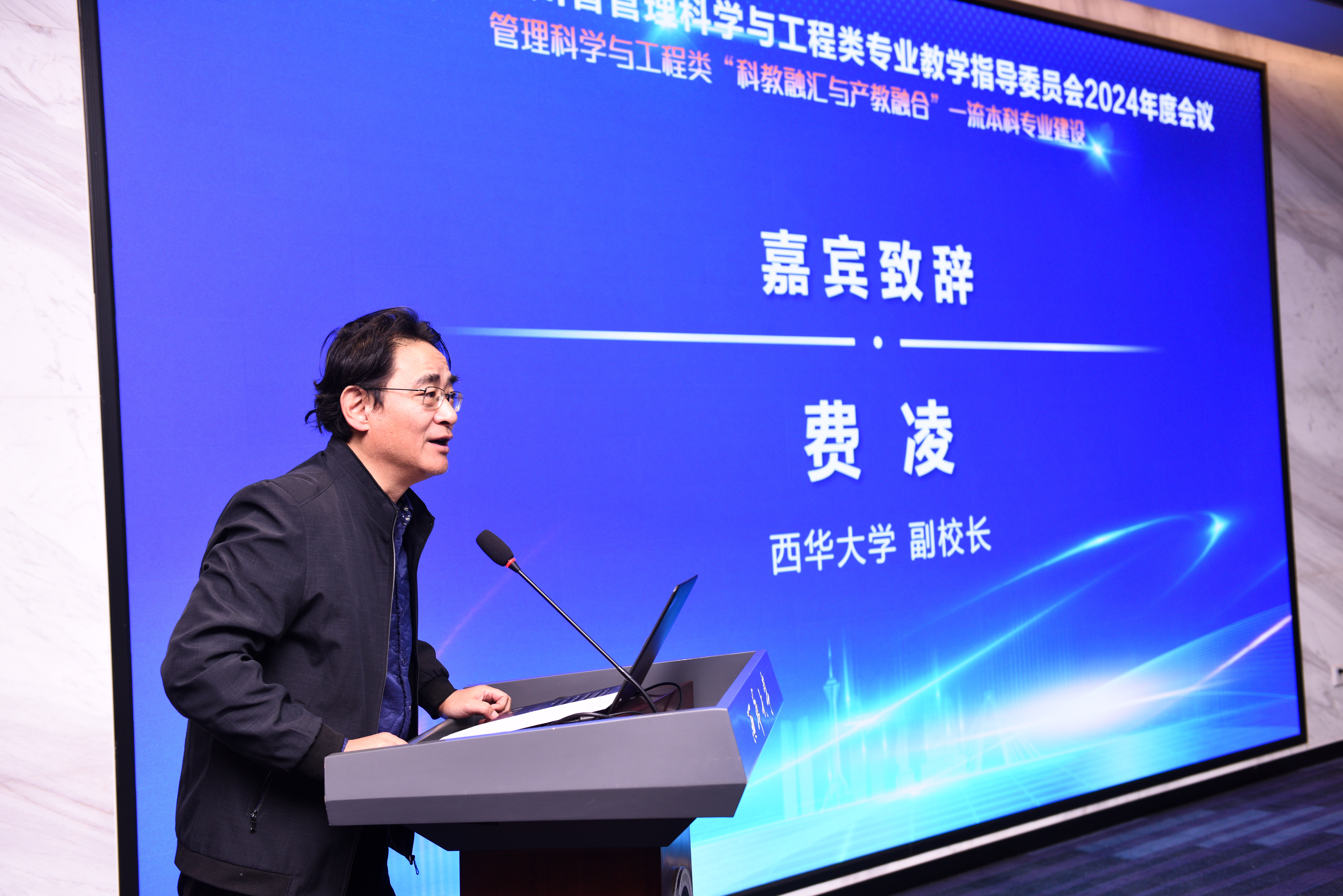 电子科技大学经济与管理学院院长、主任委员陈旭教授在致辞中强调,面对数智化转型的大潮,管理科学与工程类专业必须主动拥抱变化,加强学科交叉融合,培养具有国际视野和创新能力的复合型人才。
