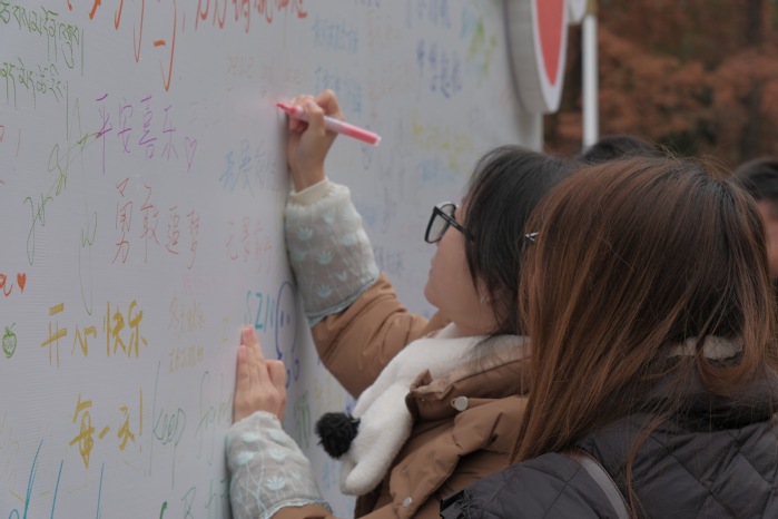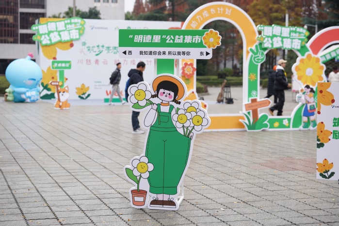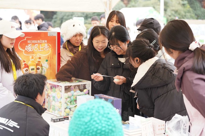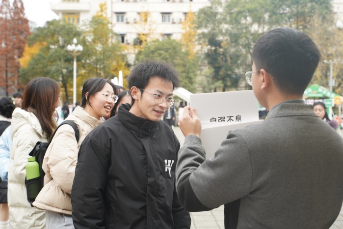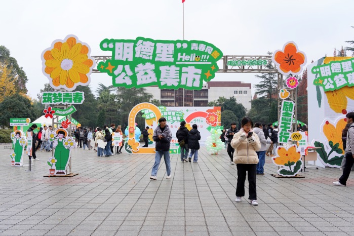 报告厅外,在西华大学“一站式”学生社区的组织下,“明德里”公益集市活动也在如火如荼地开展。智慧打卡、趣换公益好物、感受非遗魅力、参与公益抽奖等精彩纷呈的活动环节,吸引师生纷纷驻足参与,一起用爱与奉献温暖冬日时光。