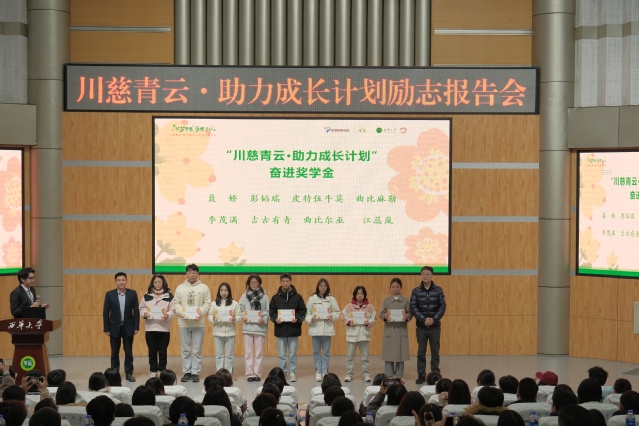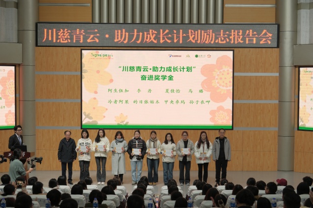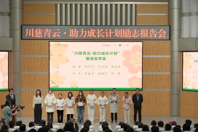 为受助学生颁发“川慈青云·助力成长计划”奋进奖学金