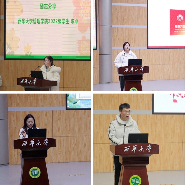 随后,西华大学管理学院学生陈卓、四川师范大学法学院毕业生冯攀莉、成都中医药大学“星辰”社会实践小队成员阴美环和成都文理学院学生高孝清泉,分别代表受助学生、优秀公益团队和个人作励志报告。他们结合自身成长经历,分享了如何克服困难、追逐梦想,在公益道路上的成长与收获,并呼吁同学们心怀感恩、努力奋斗、回报社会。报告会最后,西华大学音乐与舞蹈学院学生带来合唱《不要慌,太阳下山有月光》,合唱团倾情演绎,现场师生被温暖氛围所感染,纷纷加入合唱。