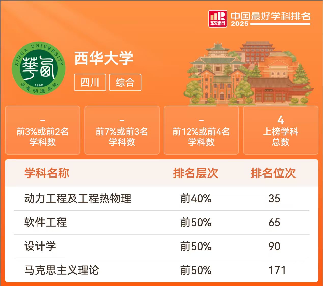 1015日,高等教育评价专业机构软科正式发布“2025软科中国最好学科排名”。我校动力工程及工程热物理、软件工程、设计学、马克思主义理论4个学科上榜。其中,软件工程和设计学学科首次上榜,学科上榜数量创新高。