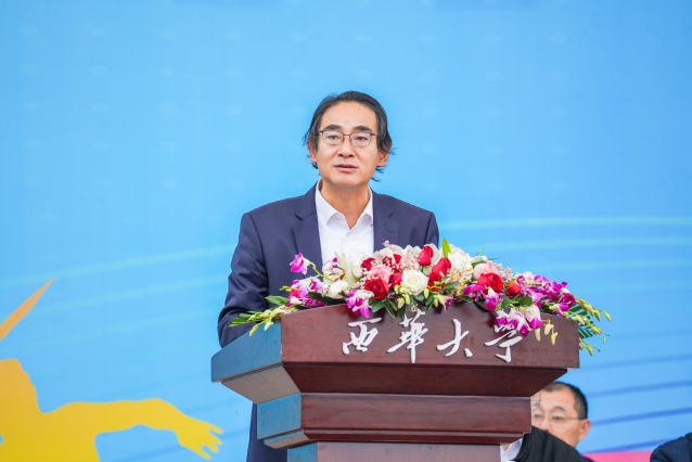 党委书记靳敏宣布西华大学第四十五届全校运动会正式开幕。