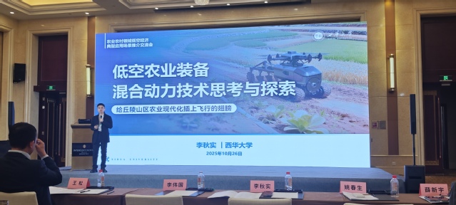 党委副书记、校长李秋实率团队参加2025武汉国际农机展,并参与由农业农村部、农机化司联合主办的“2025中国国际农业机械展览会・农业农村领域低空经济典型应用场景推介交流会”闭门会议。会上,陶智院士作题为“航空动力技术促进低空农业经济发展”的主题报告,李秋实围绕“低空农业装备混合动力技术思考与探索”进行交流分享,为农业农村低空经济技术创新与场景落地提供高校视角与实践思路。