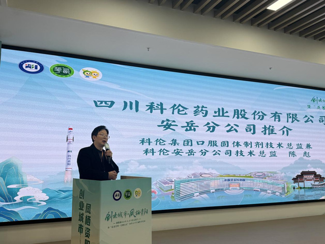 四川科伦药业股份有限公司安岳分公司技术总监陈彪作企业推介宣讲