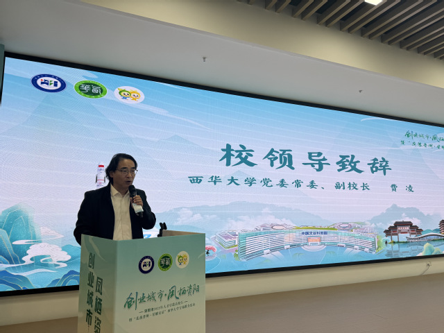 费凌代表学校对资阳市各级领导和企业代表表示欢迎。他表示,西华大学作为省属重点综合性大学,始终紧密对接国家战略和区域发展需求,培育高素质应用型人才。希望以此次活动为契机,进一步深化校地合作,并勉励同学们把握机遇,主动了解资阳,在更广阔的舞台上实现人生价值。