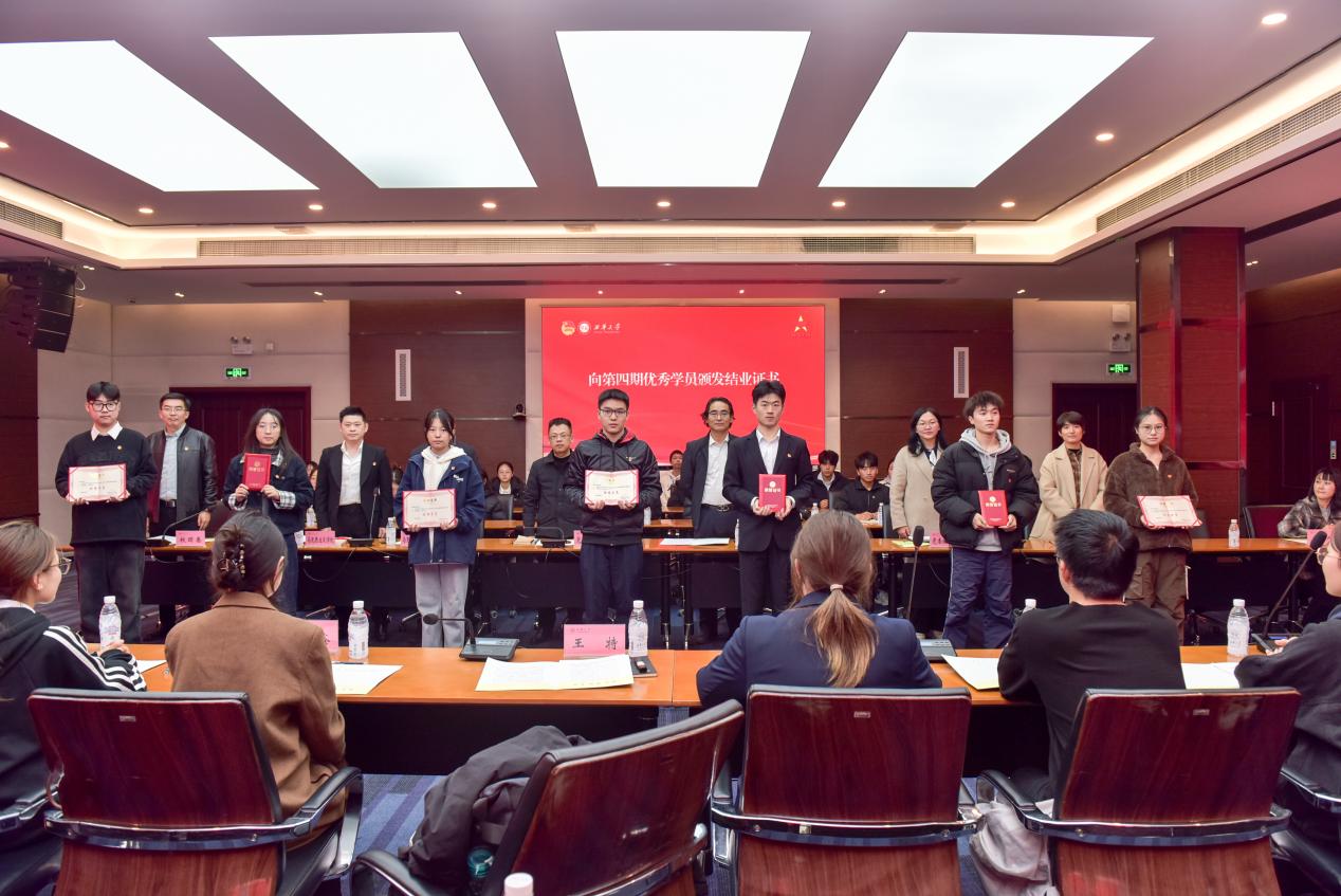 为第四期青马工程卓越班优秀学员代表颁发结业证书