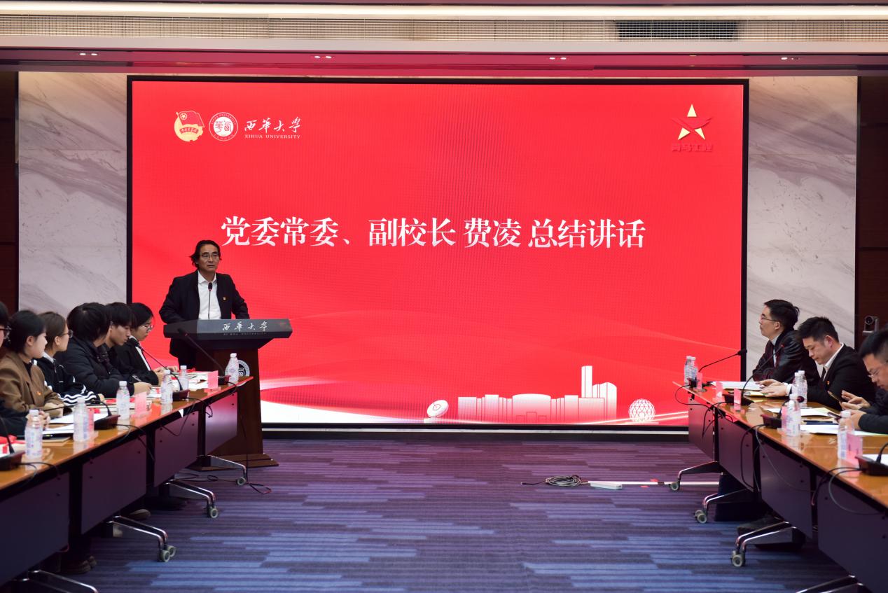 11月20日,学校在办公楼101会议室举行西华大学“青马工程”卓越班第四期结业典礼暨第五期开班仪式。党委常委、副校长费凌,党委组织部、党委宣传部、党委学生工作部、校团委、研究生院、马克思主义学院负责人,理论导师代表和全体青马工程学员参加仪式。