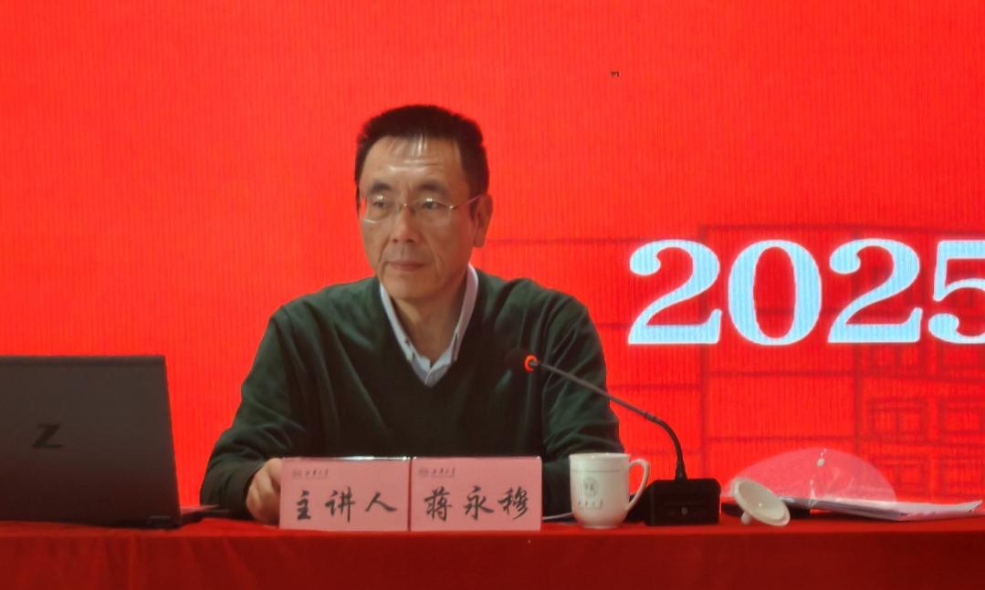 王永杰对蒋永穆教授莅临我校开展专题讲座表示热烈欢迎和诚挚感谢。他表示,深入学习贯彻党的二十届四中全会精神,精准把握学术前沿,系统谋划科研攻关,是教师实现个人学术突破、服务学科发展的必然要求,也是践行立德树人、资政育人使命的内在需要。他希望与会教师认真聆听、深入思考,将学习成效切实转化为推动科研创新、助力高质量发展的实际行动。