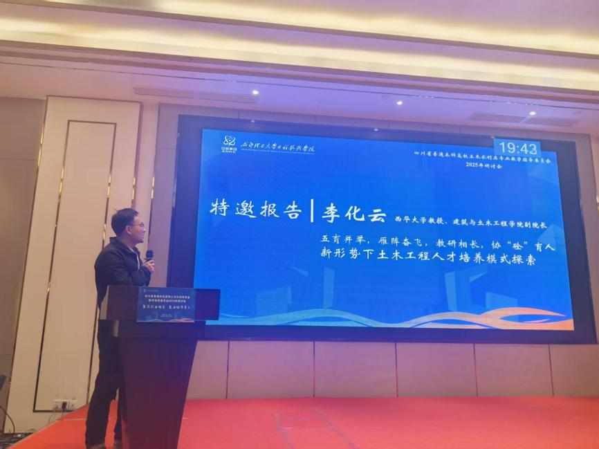 作为教指委副主任委员单位,我校受邀在会上作特邀报告。李化云以《五育并举,雁阵奋飞,教研相长,协“砼”育人——新形势下土木工程人才培养模式探索》为题作主题报告,阐述了西华大学土木水利类专业近年来构建的“雁阵式”人才培养体系,突出“五育并举”与“教研相长”深度融合。会议期间,我校代表团积极参与研讨交流,与兄弟院校就专业特色凝练、课程体系重构、实践基地建设等议题进行深入探讨,共同探索为行业转型升级培养更多高素质应用型人才的有效路径。