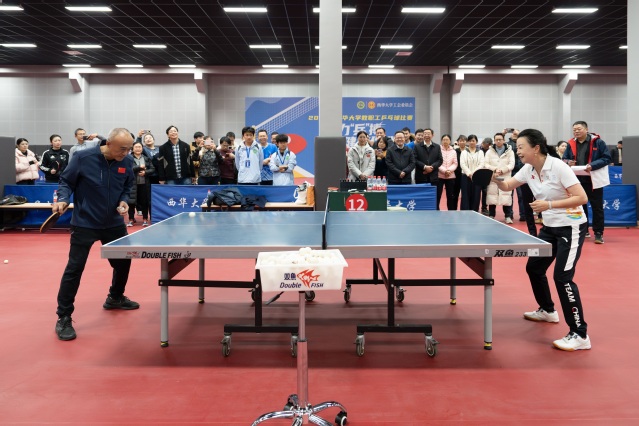 12月15日,西华大学教职工乒乓球比赛在学校乒乓球高水平运动馆拉开帷幕。党委书记靳敏,党委副书记、校长李秋实,党委副书记、工会主席朱兴华,体育学院教授、奥运冠军陈龙灿出席开幕式,相关部门和学院负责人、参赛教职工、全体裁判员及工作人员齐聚现场,共同见证赛事启动。
