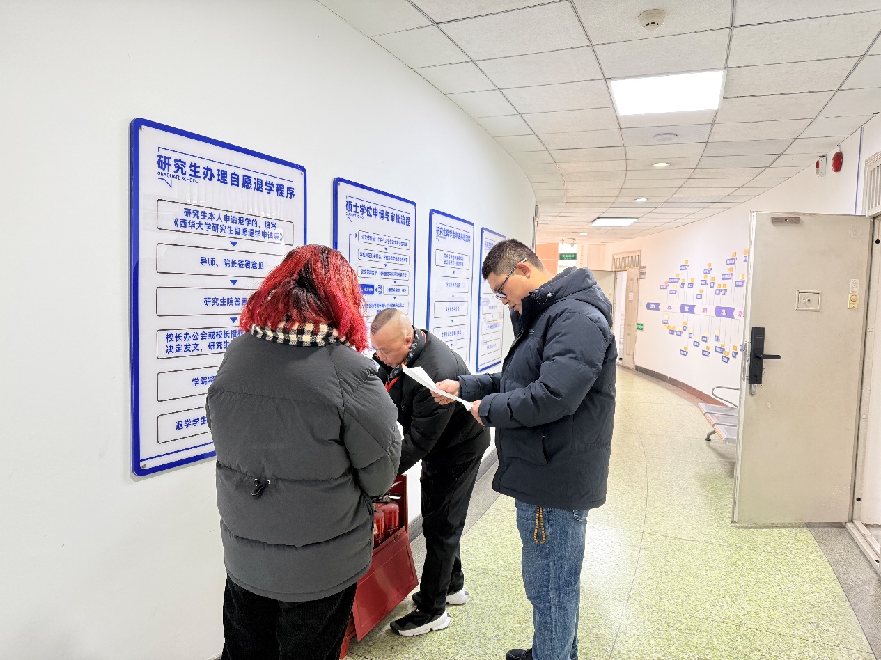 为切实保障2025年12月21-22日西华大学研究生考试工作的顺利举行,筑牢校园安全防火墙,17、18日两天保卫处组织开展郫都校区第六教学楼和研究生院保密室周边等区域的消防专项检查工作。