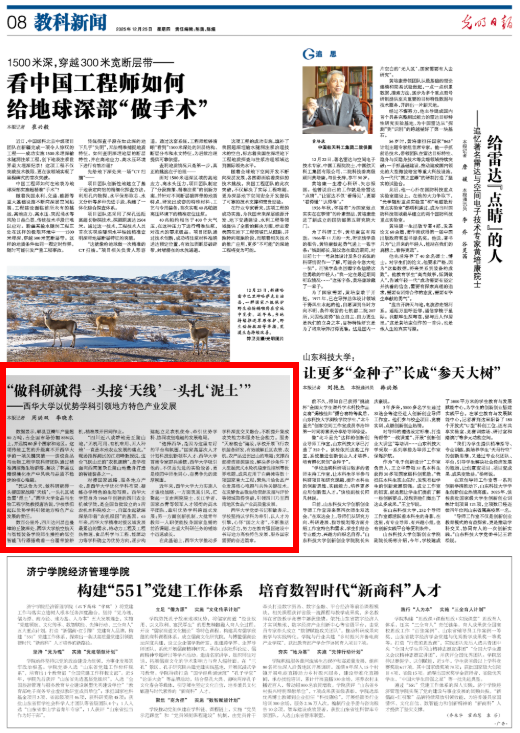 12月25日,《光明日报》以《“做科研就得一头接‘天线’一头扎‘泥土’”——西华大学以优势学科引领地方特色产业发展》为题,对我校进行专题报道,介绍了学校立足学科特色与人才优势,主动对接国家战略、服务区域发展的生动实践。报道全文如下:
