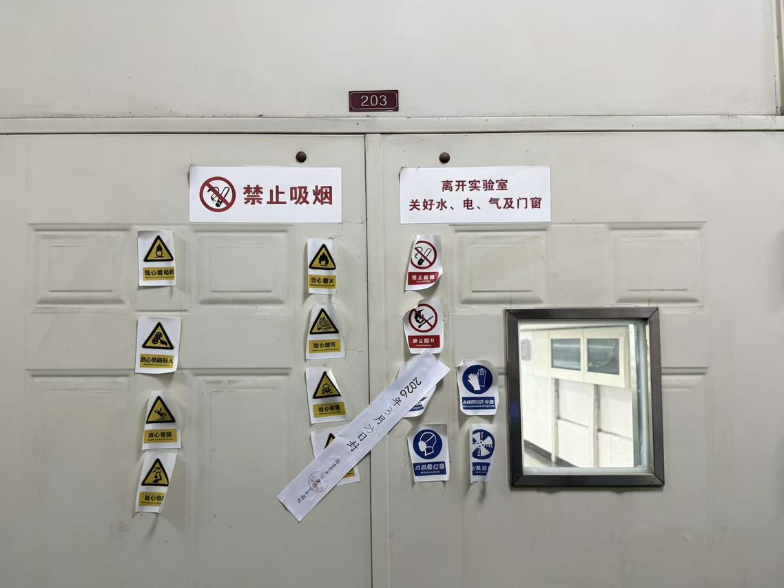 检查发现,多数实验室安全管理制度健全、管理规范,师生安全意识较强,但仍有个别实验室存在危化品分类存放不严谨、无危化品使用台账、危化品及危险废物无标签等问题。检查组对存在重大安全隐患的实验室当场宣布立即停止相关实验区域教学科研活动并予以查封,同时向所属单位下达《实验室安全隐患整改通知书》,要求限期整改,整改完成后须经复核验收合格,方可解封恢复使用。