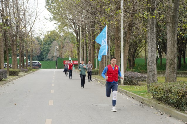 下午2点,参加校本部活动的教职工们陆续到达四食堂集合点,开始做热身运动,为跑步做好充分准备。四食堂门前人头攒动,教职工们个个精神饱满,欢声笑语打破了午日的宁静,让成都寒冷的冬天变得暖意融融。2点10分,在学校党委副书记王政书的枪声令下,比赛正式拉开序幕。教职工们迈着矫健的步伐随领跑的运动员们一起冲出了起跑线。寒风习习,挡不住教职工们高涨的热情。中间的彩旗方队挥动着各学院、各单位的旗帜,彩旗随风飞扬,鼓舞着士气。道路两旁“全民健康我先行,健康快乐迎新年”“快乐奔跑,认真亮相,留下足迹,跑出健康”“你是今天最亮的‘星’康跑路上西华人”等的标语极具吸引力,营造着全民健身的校园氛围。沿途的志愿者手持小彩旗为“康跑”队伍指引方向,呐喊加油。