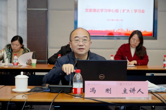 12月17日下午,学校召开党委理论学习中心组(扩大)学习会。北京师范大学思想政治工作研究院院长冯刚教授应邀作专题辅导报告。全体校领导,各党(工)委(党总支)书记,各学院院长,机关及业务部门主要负责人参加会议。会议由校党委书记余孝其主持。