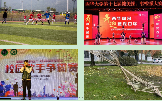 “百年荣光,闪耀未来”系列活动、“四史”宣讲会系列活动、马克思主义经典原著选读、“红色书廊:庆百年华诞,温百年党史”读书交流活动,通过宣扬红色文化,增强了同学们的责任感与使命感;校园提案大赛、简历制作与模拟面试大赛、西华诗词大会、辩论联赛、主持人大赛等系列活动,在同学中引起热烈的反响;“青春志愿,爱在社区”“学雷锋”“助力乡村振兴”等系列志愿服务活动,进一步培育了学生奉献友爱互助进步的志愿精神;ACM-ICPC程序设计大赛、建构长廊展、大学生智能机器人大赛、新“食”代科技创新活动等,进一步拓展了学生视野,提升了学生科研创新能力。