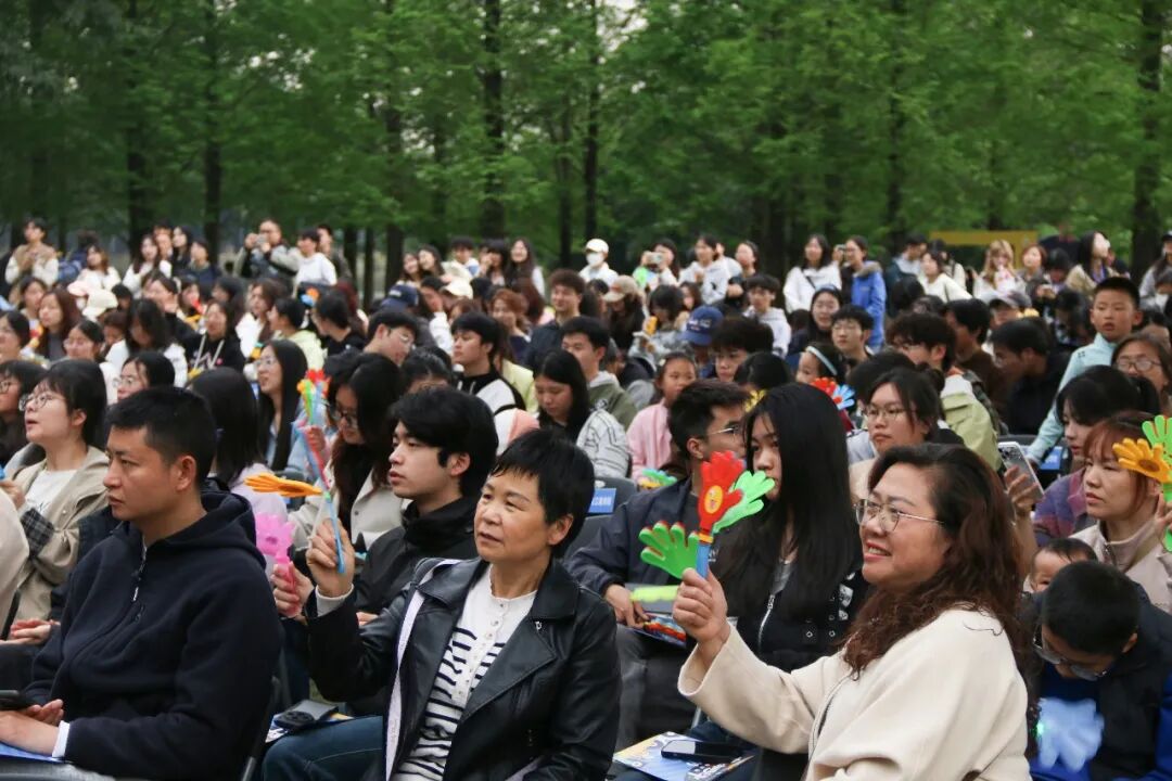 随后,音乐与舞蹈学院教师、音乐协会和校园歌手用音乐之声点燃现场氛围。葫芦丝独奏《月光下的凤尾竹》展现了中华传统民乐的清雅意境,二胡独奏《战马奔腾》令观众仿佛置身辽阔草原,《逆战》与《山海》等曲目激荡出青年人不畏挑战、勇毅前行的热血与豪情。最后,全场合唱《改变自己》,唱响了青年学子向阳而生、逐梦前行的青春乐章。活动期间还设置了“听曲猜歌”互动环节,熟悉的旋律接连响起,同学们踊跃抢答、欢声笑语不断,让湖畔成为充满活力与温情的艺术乐园。