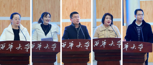 在经验交流分享环节,全国党建工作样板党支部、教务处党支部刘克剑,“双带头人”教师党支部书记工作室、文学与新闻传播学院教工第三党支部陈彧,优秀“支部工作法”培育创建党支部、建筑与土木工程学院工程造价系党支部书记李海凌,四川省“三全育人”综合改革试点学院、食品与生物工程学院党委副书记李鹤分别就党支部建设的思考与探索进行分享。智慧的火花在这里碰撞,奋进的力量在此处凝聚。
