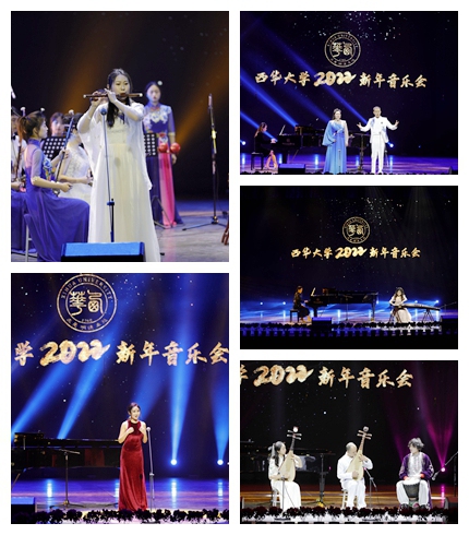 音乐与舞蹈学院师生准备的舞蹈表演、乐器演奏、独唱合唱等多种节目为观众带来了精彩的视听享受。伴随着现场师生热烈的掌声,音乐会在民乐合奏《渔歌》中拉开帷幕,西华人以动人的竹笛表达对新一年美好的展望。