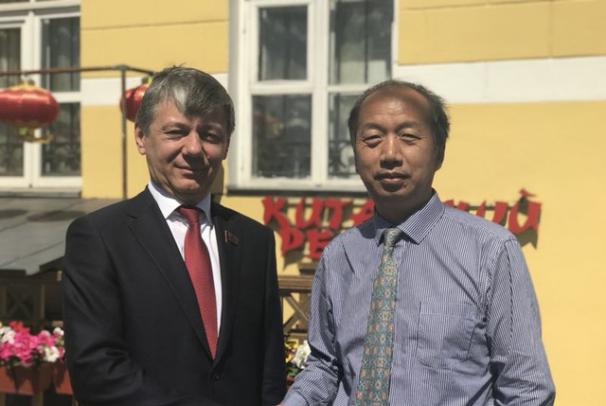 2019年,马克思主义学院薛新国教授(右)参加“中国、俄罗斯、中东欧国家发展战略论坛”国际学术会议,与俄共中央副主席诺维科夫合影