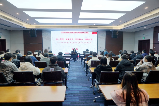 根据中央和省委的统一部署以及学校党委的具体安排,1月10日上午,省委宣讲团高校分团成员、西南交通大学马克思主义学院何薇教授走进西华大学宣讲党的十九届六中全会和省委十一届十次全会精神。辅导员代表、学生干部代表、青马班成员、马克思主义学院师生代表现场聆听了报告。同时,因疫情防控需要,报告会以网络直播形式在多个分会场同步进行。校党委常委、党委宣传部部长山述兰主持报告会。
