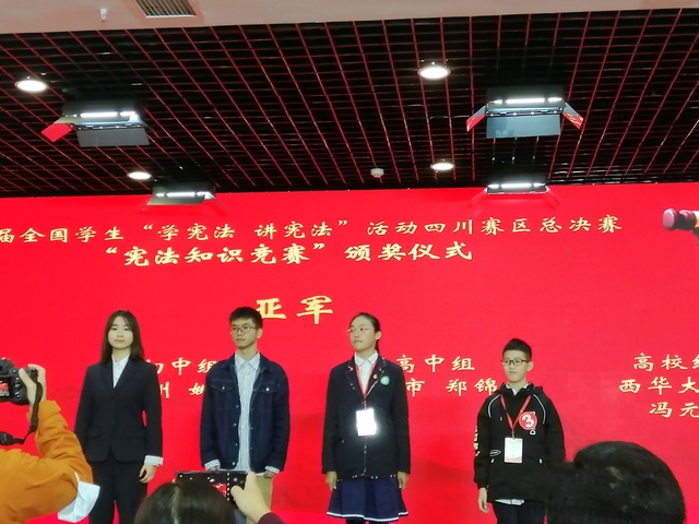 冯元同学(左一)获第六届“学宪法 讲宪法”四川赛区总决赛法治知识竞赛亚军
