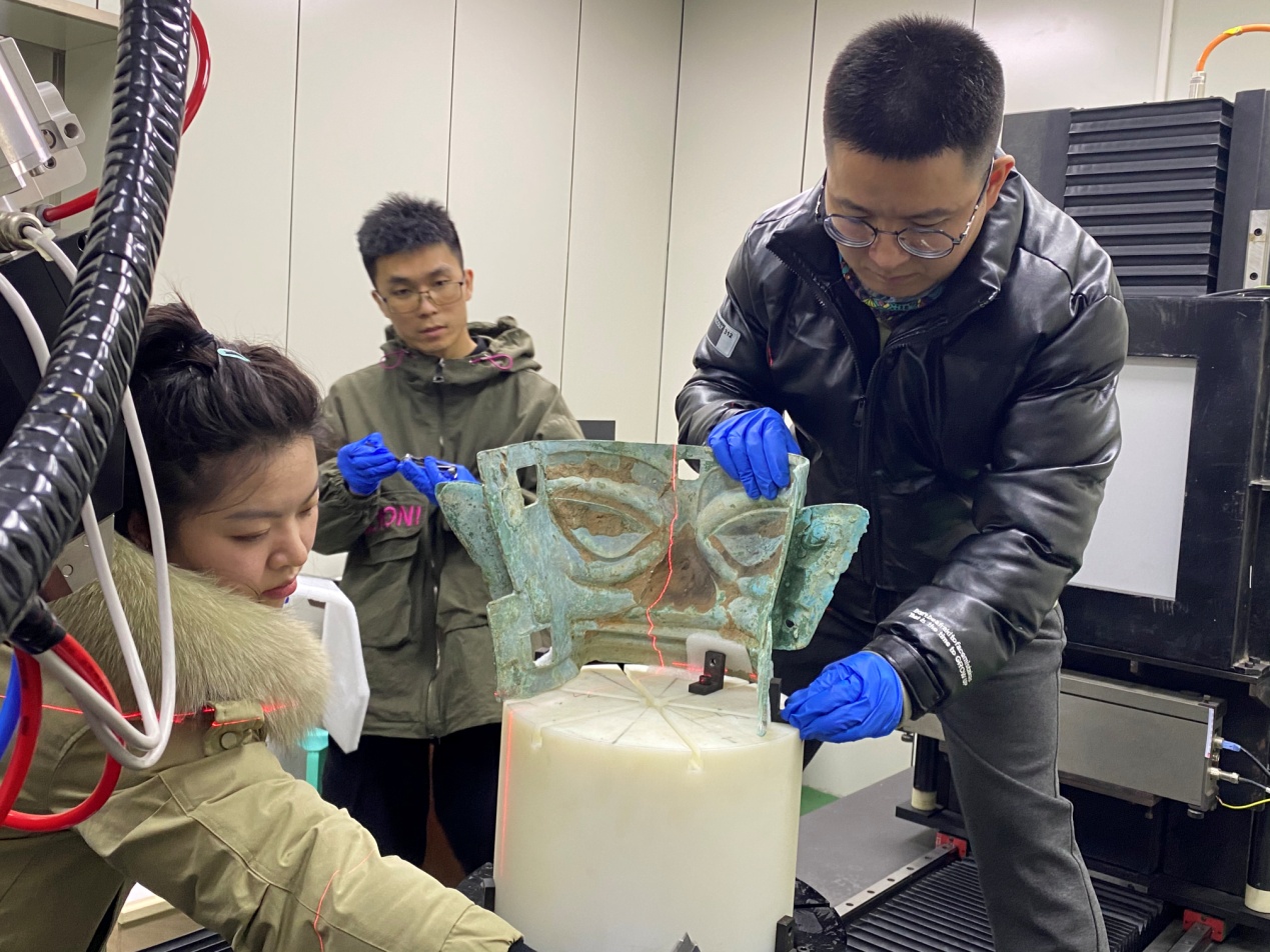 1月25日,一批刚从三星堆出土的文物运抵西华大学科技创新大楼,通过先进数字辐射成像系统与器件实验室450/240kV双源双探高精度CT成像系统进行无损检测,实验室X射线成像技术为川内考古研究提供了新的技术途径。四川省文物考古研究院技术总师兼研究院文物保护中心主任谢振斌、副主任王冲一行7人来校开展考古研究。中央电视台和四川广播电视台记者对文物发掘、保护和研究过程进行全程跟踪拍摄。