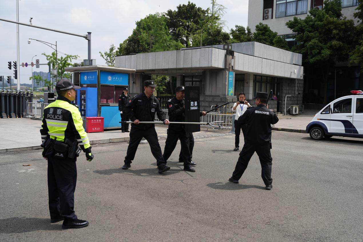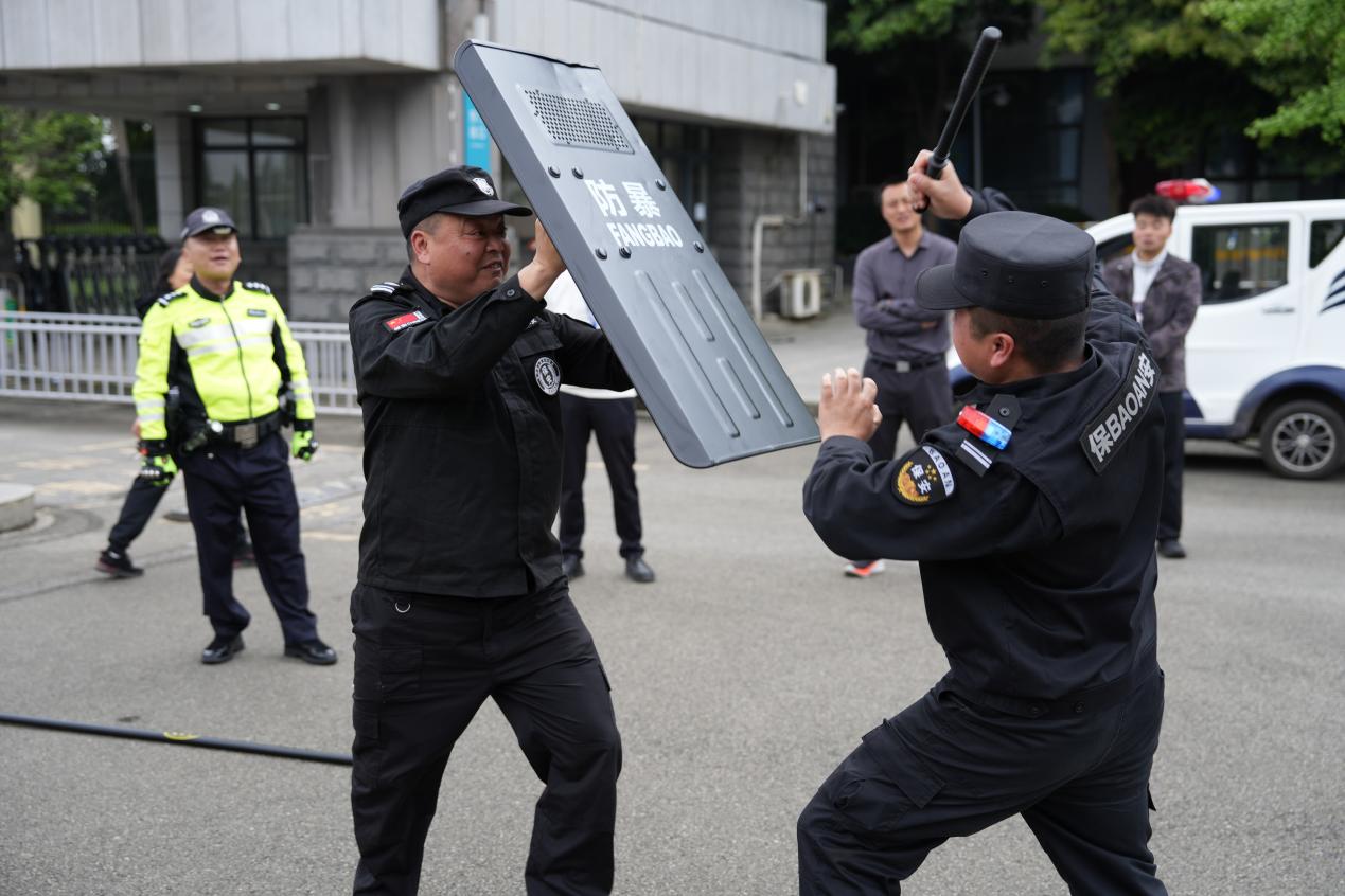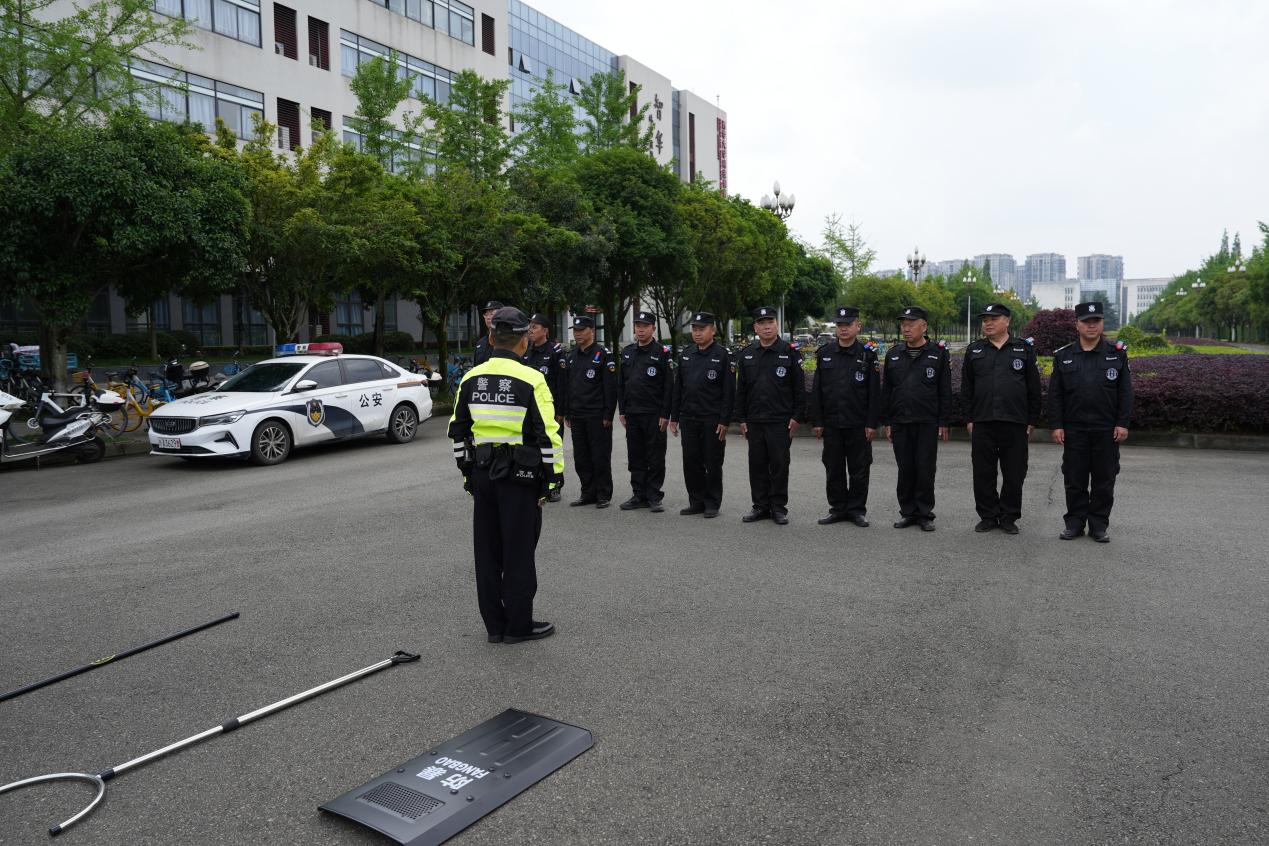 为进一步强化校园安全防范体系,提升安保队伍应急处突能力,切实保障全校师生生命财产安全,2026 年 4 月 15 日中午,西华大学保卫处特邀红光派出所民警入校,开展校园安保人员防暴应急实战演练培训。保卫处副处长陈小骄现场指导。