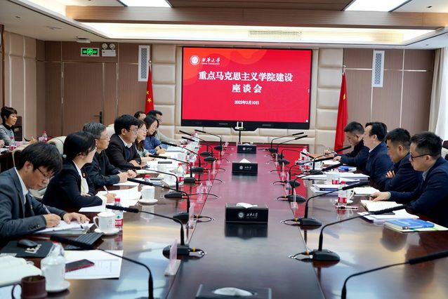 校党委副书记张力主持会议。省委宣传部理论处(哲社办)处长李先波、四级调研员彭膺昊,省教育厅宣思统战处处长李大鹏;党委宣传部、发展规划与学科建设处、教务处、研究生院、计划财务处、学工部等单位负责同志,马克思主义学院班子成员、部分教师代表和学生代表参加调研考察会。