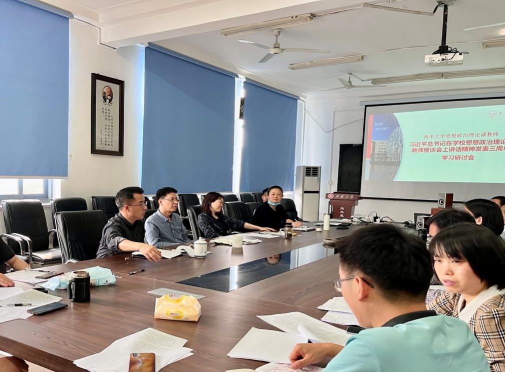 冯永泰作了总结发言。他说,习近平总书记的讲话充分体现了党中央对思想政治理论课的高度重视和殷切希望。三年来,学院先后召开了专题学习座谈会和笔谈会,深入领会讲话精神,并落实到学院建设发展各项工作中。我们要继续深入学习讲话精神,进一步落实《关于加强新时代马克思主义学院建设的意见》新要求,做好学院“十四五”规划,谋划好学院的发展,主动适应新形势新要求,锐意进取,把制度优势转化为推动学院发展的新契机新动能。